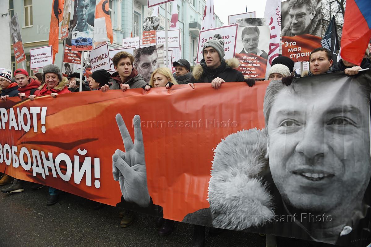 Марш памяти политика Бориса Немцова прошел по Бульварному кольцу.