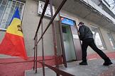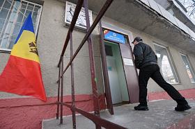 Парламентские выборы в Молдавии. Пожилая женщина перед входом на избирательный участок.