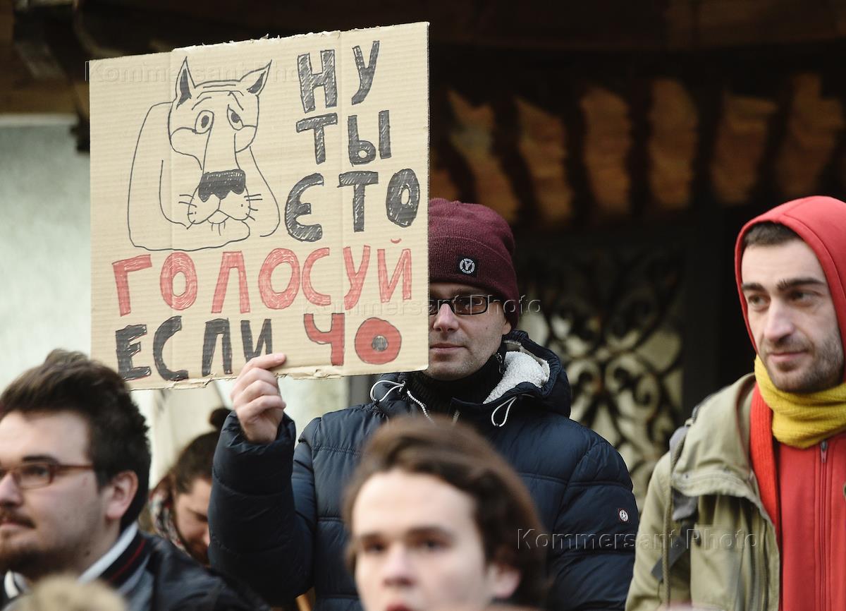 Парламентские выборы в Молдавии. Участники шествия общественного движения "Оккупай Гугуцэ". Плакат с надписью "Ну ты это, голосоуй если что...".