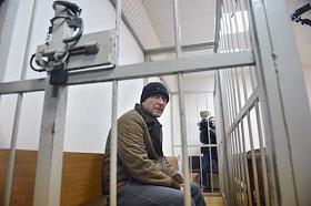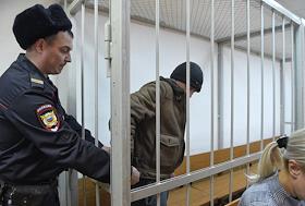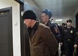 Житель Воронежа Игорь Подпорин (справа), повредивший картину Ильи Репина "Иван Грозный и сын его Иван 16 ноября 1581" в Государственной Третьяковской галерее 25 мая 2018 года, перед началом заседания Замоскворецкого районного суда.