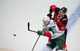 Континентальная хоккейная лига (КХЛ). 1/4 финала - Восток. Матч между командами "Авангард" (Омск) и "Ак Барс" (Казань) в ледовом дворце "Арена Балашиха". Игрок команды "Авангард" Сергей Шумаков во время матча.