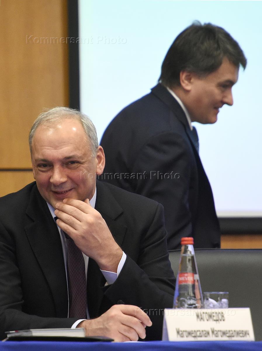 Общее собрание членов Российской академии образования (РАО). Заместитель руководителя администрации президента России, председатель попечительского совета РАО Магомедсалам Магомедов (слева) во время собрания.