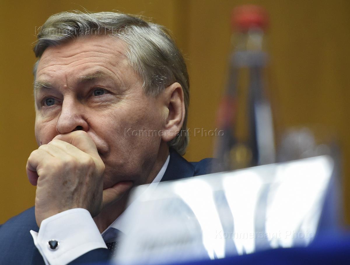 Общее собрание членов Российской академии образования (РАО). Академик РАО, декан факультета психологии Московского государственного университета имени М.В.Ломоносова, президент РАО Юрий Зинченко (слева) во время собрания.