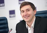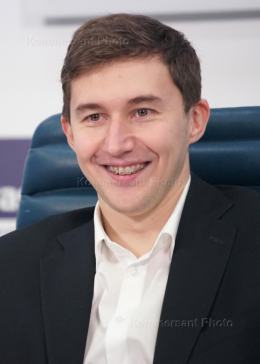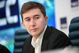 Гроссмейстер Сергей Карякин во время пресс-конференции на тему "Международный шахматный турнир по блицу в Москве". Пресс-конференция прошла в агентстве ТАСС.