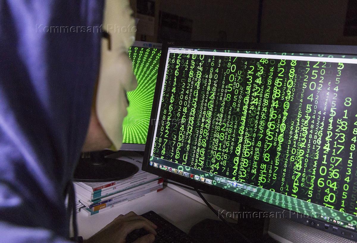Жанровая фотография. Мужчина в маске перед монитором с цифрами.