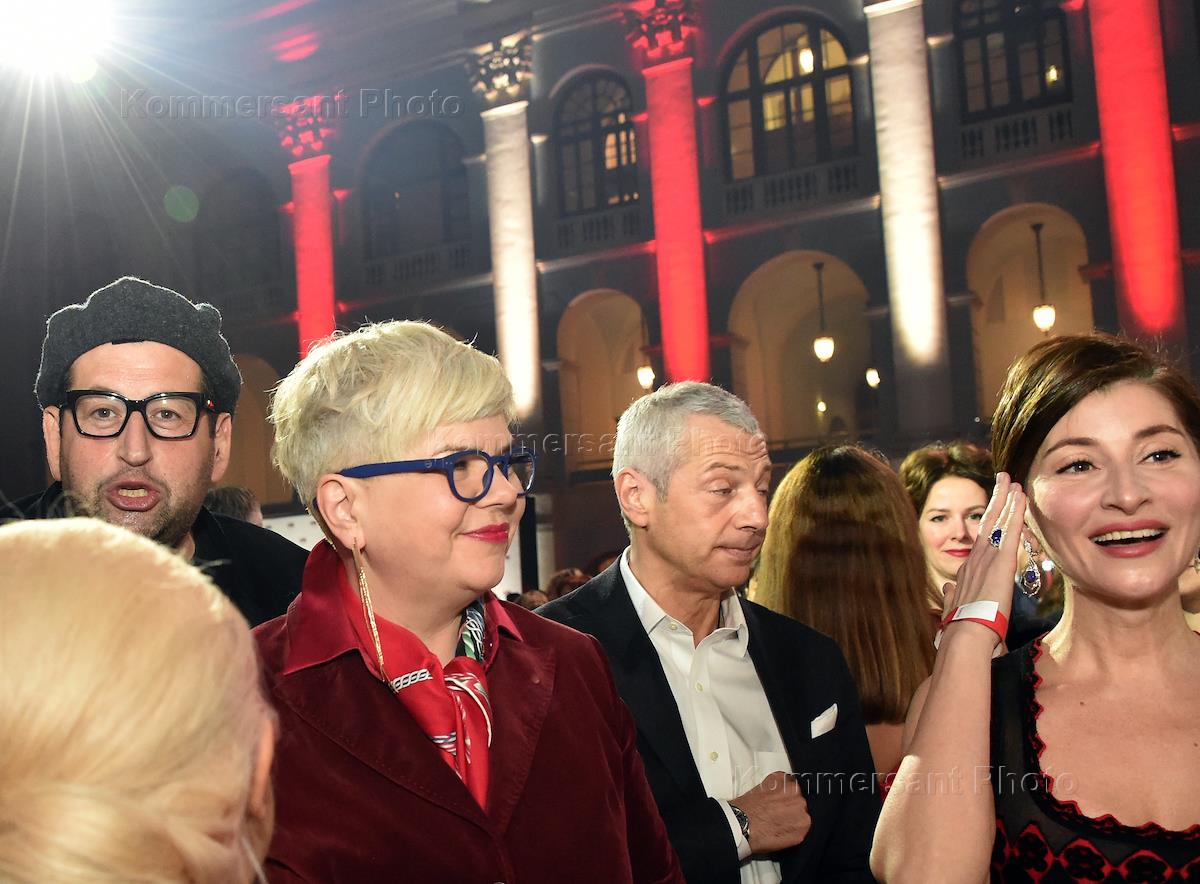 Церемония вручения 7-ой Ежегодной премии газеты The Art Newspaper Russia прошла в Гостином Дворе. Справа налево: журналисты Антон Желнов, Анна Монгайт, психолог Лена Фейгин, управляющий партнер First Nation Societe Bancaire/FNSB Ян Яновский и телеведущая Софико Шеварднадзе во время церемонии.