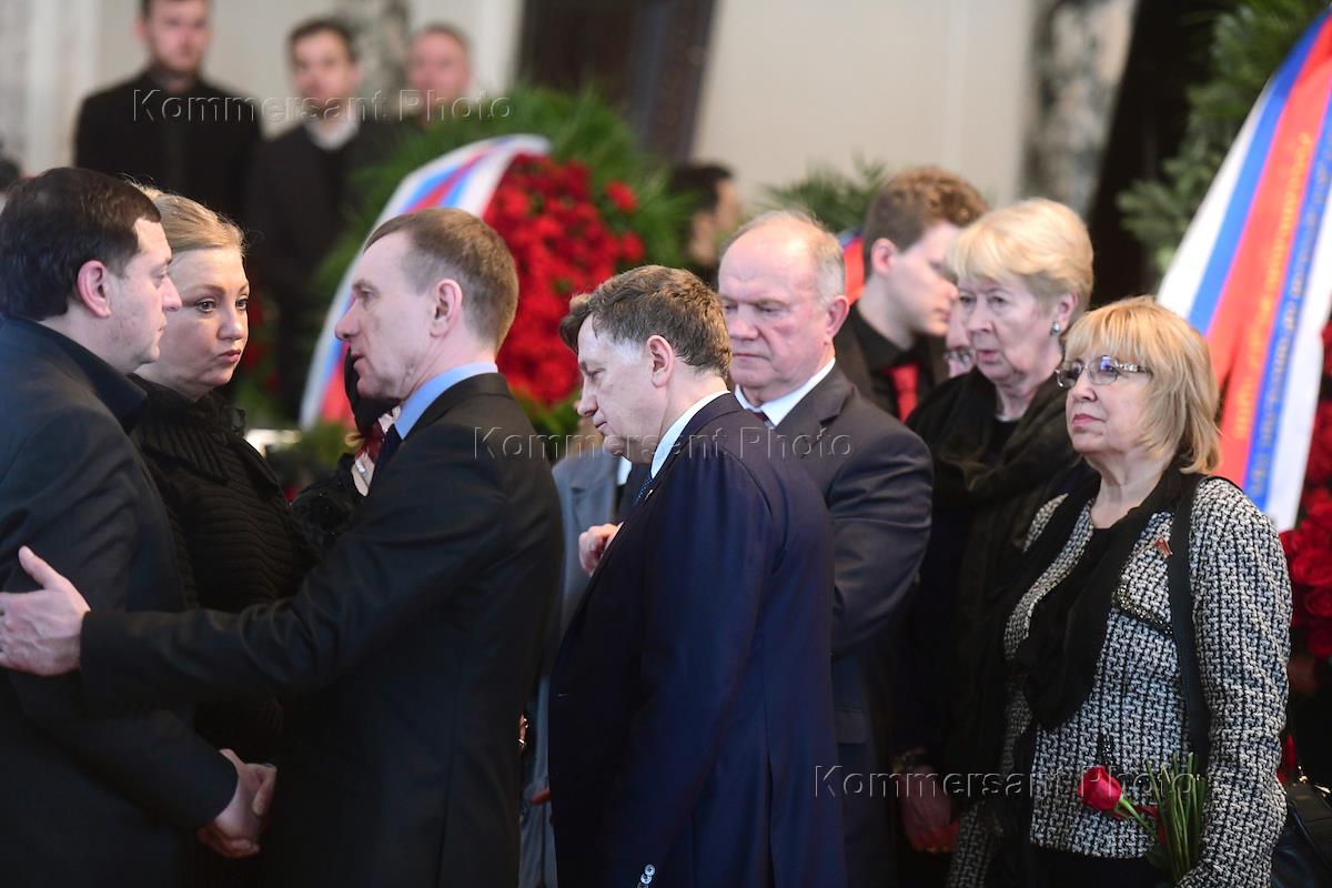 Церемония прощания с членом комитета Государственной думы (ГД) России по образованию и науке, академиком РАН Жоресом Алферовым в Санкт-Петербургском научном центре РАН на Университетской набережной. Лидер КПРФ Геннадий Зюганов (в центре) на церемонии.