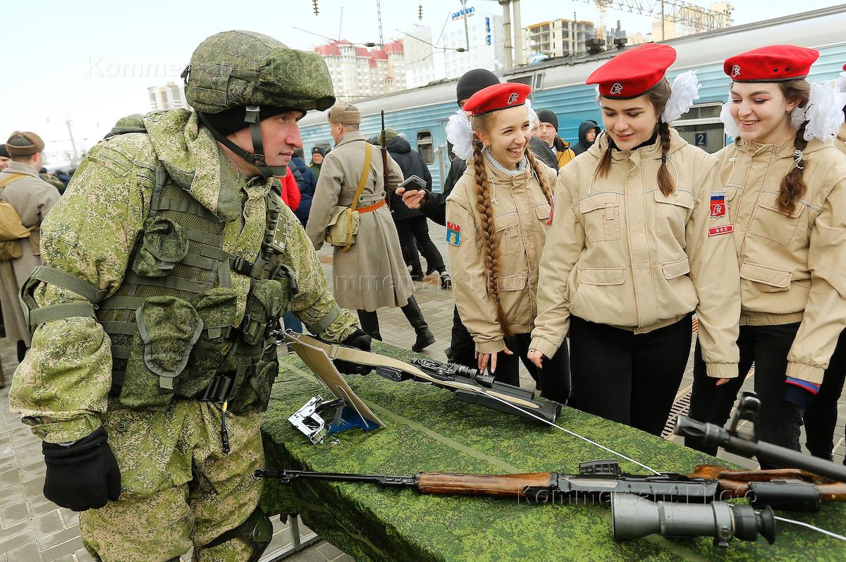 В рамках военно-исторической акции "Сирийский перелом" в Волгоград прибыл поезд-музей с военными трофеями, захваченными российскими военными у боевиков в Сирии.