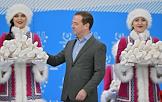 Рабочая поездка председателя Правительства России Дмитрия Медведева в Красноярск. Председатель Правительства России Дмитрий Медведев (в центре), руководитель Федеральноого медико-биологического агентства (ФМБА России) Владимир Уйба (справа) и заместитель председателя Правительства России Ольга Голодец (слева) во время посещения многофункционального спортивного комплекса "Сопка".
