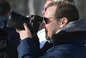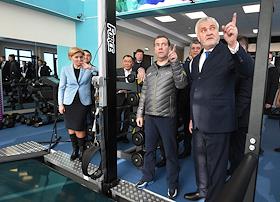 Рабочая поездка председателя Правительства России Дмитрия Медведева в Красноярск. Председатель Правительства России Дмитрий Медведев во время посещения многофункционального спортивного комплекса "Сопка".
