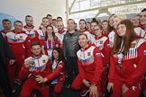 Рабочая поездка председателя Правительства России Дмитрия Медведева в Красноярск. Председатель Правительства России Дмитрий Медведев (в центре) во время встречи с участниками зимней Универсиады-2019 в многофункциональном спортивном комплексе "Сопка".