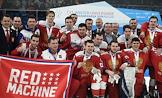 Рабочая поездка председателя правительства Дмитрия Медведева в Красноярск. Председатель правительства России Дмитрий Медведев (в центре) с игроками сборной России, занявшими 1-е место в соревнованиях во хоккею среди мужчин на XIX Всемирной зимней Универсиаде-2019, в Ледовом дворце "Кристалл арена".
