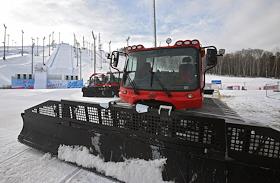 Автомобиль для подготовки горнолыжных трасс ратрак на склоне.