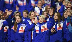 XIX Всемирная зимняя Универсиада 2019. Церемония закрытия прошла в ледовом дворце "Платинум Арена Красноярск". Сборная команда России.