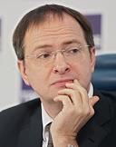 Министр культуры России Владимир Мединский на пресс-конференции, посвященной обсуждению законодательных аспектов развития киноиндустрии и инициативам Министерства культуры России в сфере кино. Пресс-конференция прошла в агентстве ТАСС.
