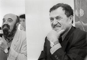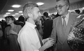 День рождение радиостанции "Эхо Москвы". Писатель Василий Аксенов (справа) на праздновании.
