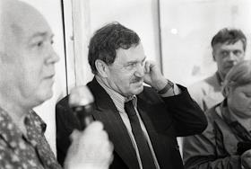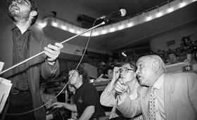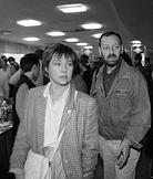 Режиссер Ролан Быков (справа) и актриса Елена Санаева (в центре) на праздновании Дня рождения радиостанции "Эхо Москвы".
