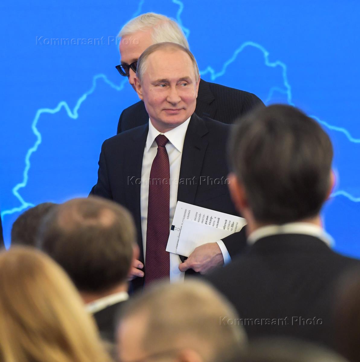 XII Неделя российского бизнеса прошла в отеле The Ritz-Carlton. Cъезд Российского союза промышленников и предпринимателей (РСПП). Президент России Владимир Путин во время съезда.