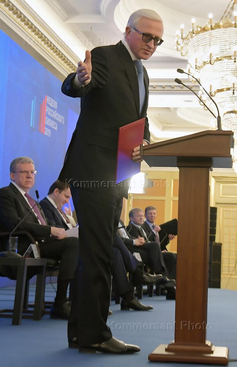 XII Неделя российского бизнеса прошла в отеле The Ritz-Carlton. Cъезд Российского союза промышленников и предпринимателей (РСПП). Президент РСПП Александр Шохин во время съезда.