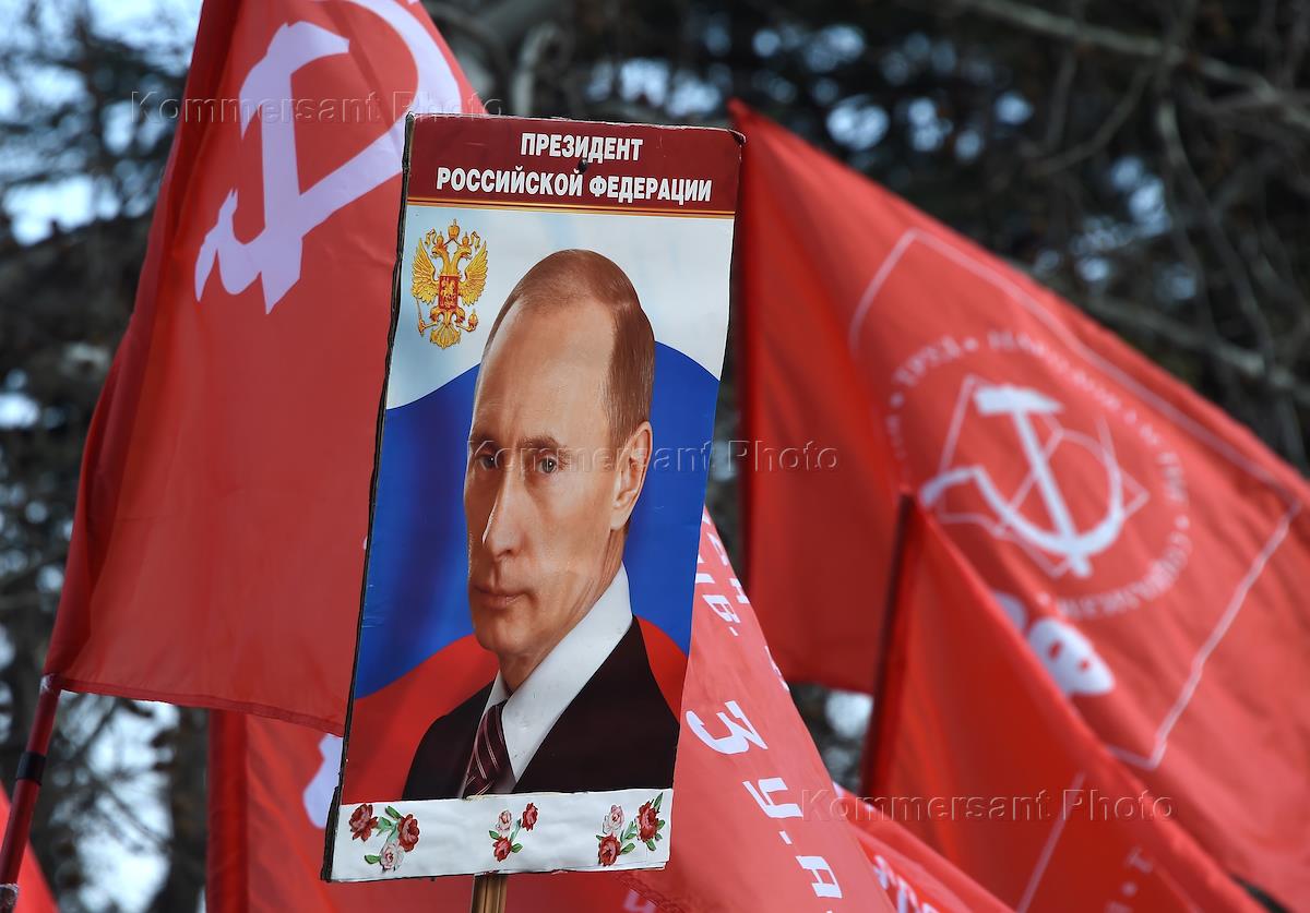 Праздничные мероприятия, посвященные пятилетию Крымской весны и проведению республиканского референдума о воссоединении Крыма с Россией. Справа налево: лидер КПРФ, член комитета Государственной думы (ГД) России по делам Содружества Независимых Государств, евразийской интеграции и связям с соотечественниками Геннадий Зюганов, председатель комитета ГД России по международным делам Леонид Слуцкий, председатель ГД России Вячеслав Володин, председатель Госсовета Республики Крым Владимир Константинов, первый заместитель председателя комитета ГД России по делам Содружества Независимых Государств, евразийской интеграции и связям с соотечественниками Константин Затулин и председатель комитета ГД России по региональной политике и проблемам Севера и Дальнего Востока Николай Харитонов во время митинга.