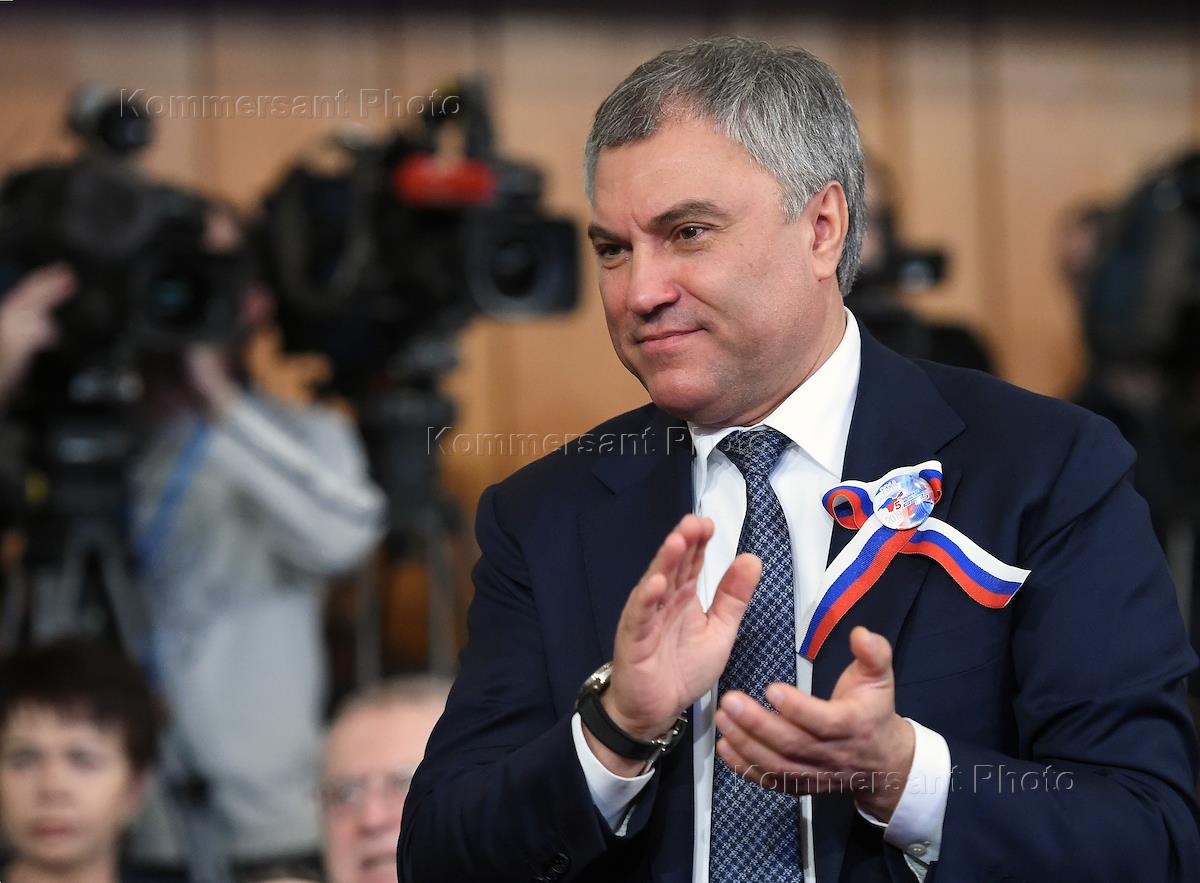 Первое совместное заседание Совета Государственной думы России и Государственного Совета Республики Крым. Председатель Государственной Думы России Вячеслав Володин во время заседания.