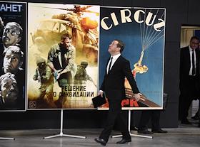 Заседание Правительственного совета по развитию отечественной кинематографии. Председатель правительства России Дмитрий Медведев перед началом заседания на территории киноконцерна "Мосфильм".
