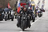 Праздничные мероприятия, посвященные пятилетию Крымской весны и проведению республиканского референдума о воссоединении Крыма с Россией, на горе Гасфорта. Лидер мотоклуба "Ночные волки" Александр "Хирург" Залдостанов (в центре) во время праздничного мотопробега "Симферополь - Севастополь - гора Гасфорта".