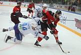 Континентальная хоккейная лига (КХЛ). Матч между командами "Авангард" (Россия, Омск) и "Барыс" (Казахстан, Астана) на стадионе "Арена-Балашиха" имени Юрия Ляпкина. Игроки команды "Авангард" во время матча.