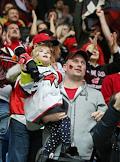 Континентальная хоккейная лига (КХЛ). Матч между командами "Авангард" (Россия, Омск) и "Барыс" (Казахстан, Астана) на стадионе "Арена-Балашиха" имени Юрия Ляпкина. Болельщики команды "Авангард" на трибуне во время матча.