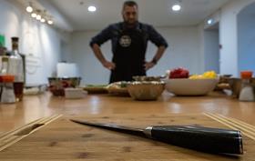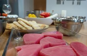 Жанровая фотография. Мастер-класс в кулинарной студии "Живи вкусно". Приготовление стейка из тунца.