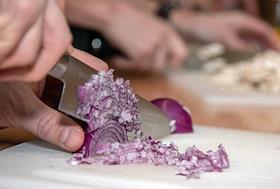 Жанровая фотография. Мастер-класс в кулинарной студии "Живи вкусно". Нарезка репчатого лука.
