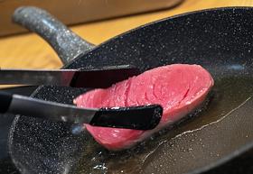 Жанровая фотография. Мастер-класс в кулинарной студии "Живи вкусно". Приготовление стейка из тунца на сковороде.