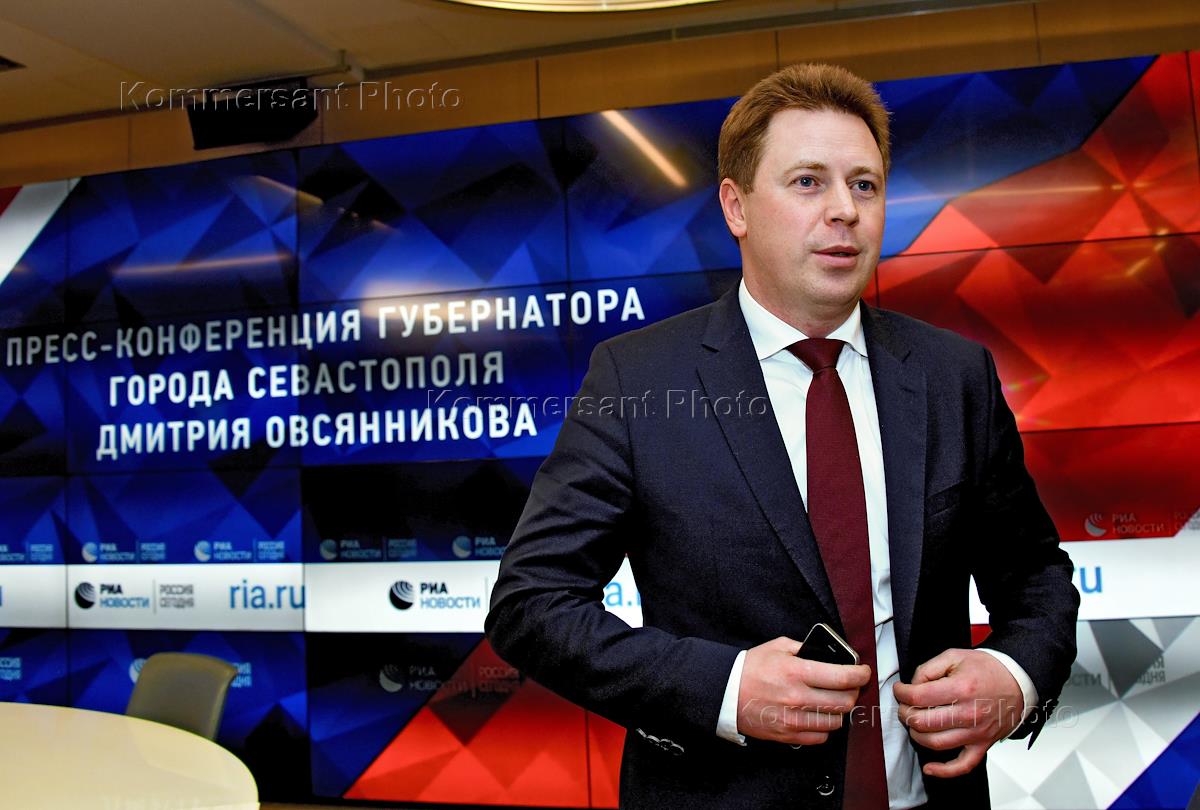Губернатор Севастополя Дмитрий Овсянников перед началом пресс-конференции "Севастополь: 5 лет дома! Итоги и планы" в МИА "Россия сегодня".