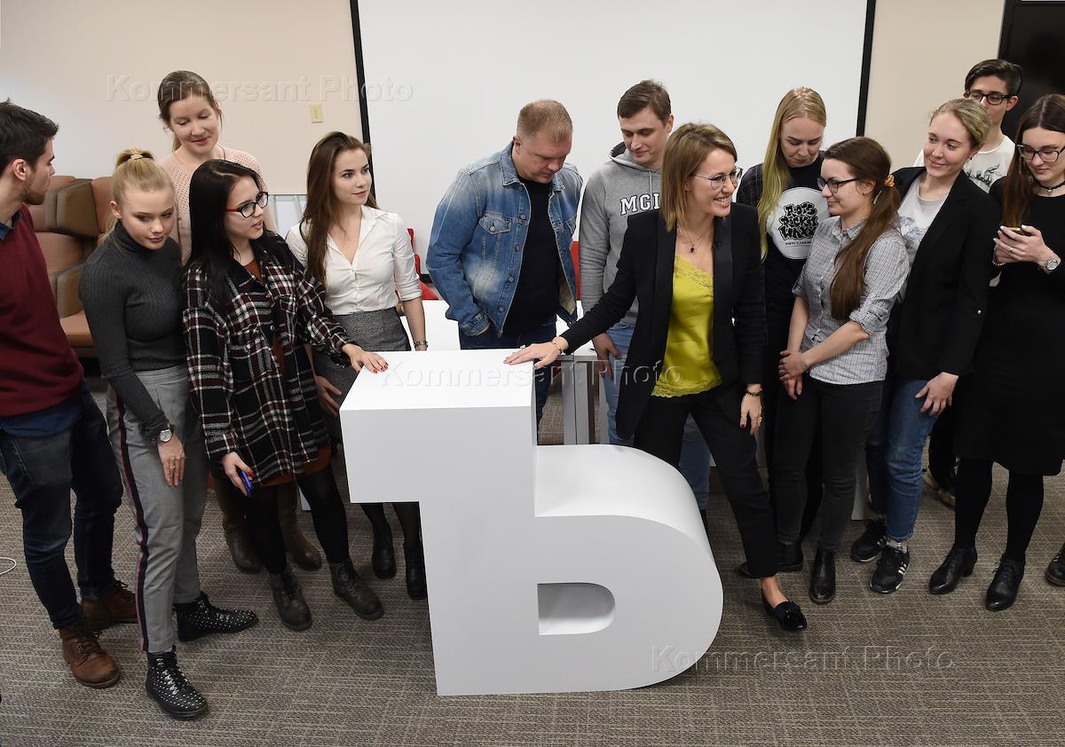 Политик Ксения Собчак во время встречи со студентами Академии журналистики "Коммерсантъ".