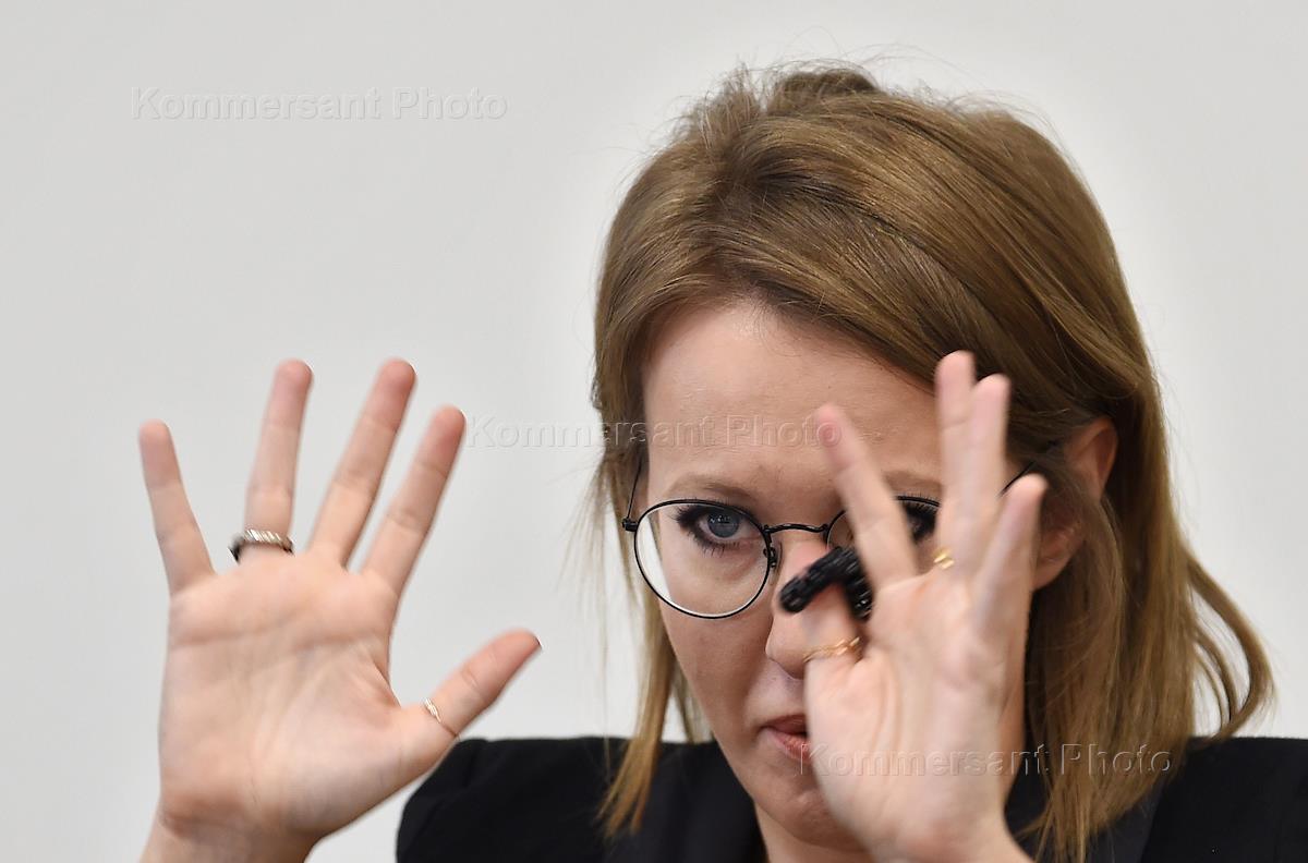 Политик Ксения Собчак перед началом встречи со студентами Академии журналистики "Коммерсантъ".