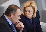 Пленарное заседание Государственной думы (ГД) России. Заместители председателя ГД России Ольга Тимофеева (справа) и Петр Толстой (слева) перед началом заседания.