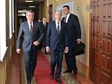 Представление временно исполняющего обязанности главы республики Алтай Олега Хорохордина членам правительства региона, депутатам и главам муниципалитетов. Временно исполняющий обязанности главы республики Алтай Олег Хорохордин (в центре) и полномочный представитель президента России в Сибирском федеральном округе Сергей Меняйло (слева) во время встречи.