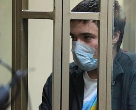 Гражданин Украины Павел Гриб, обвиняемый в содействии терроризму, во время заседания Северо-Кавказского Окружного военного суда.