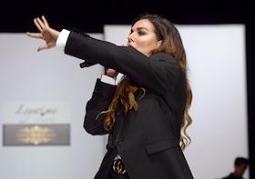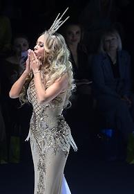"Неделя моды в Москве. Сделано в России" "Moscow Fashion Week" сезон весна-лето 2019/2020 прошла в Гостином дворе. Показ коллекции "Глянец" дизайнера Анны Часовских (A. CHASOVSKIH) и дизайнера украшений Веры Басалаевой. Певица Анна Седакова во время показа.