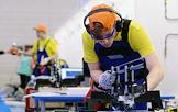 IV Национальный чемпионат по профессиональному мастерству "Молодые профессионалы" в рамках XI Петербуржского международного инновационного форума в конгрессно-выставочном центре "Экспофорум". Столяр во время работы по дереву.