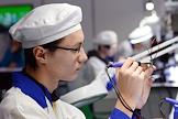 IV Национальный чемпионат по профессиональному мастерству "Молодые профессионалы" в рамках XI Петербуржского международного инновационного форума в конгрессно-выставочном центре "Экспофорум". Электромонтажник во время работы.