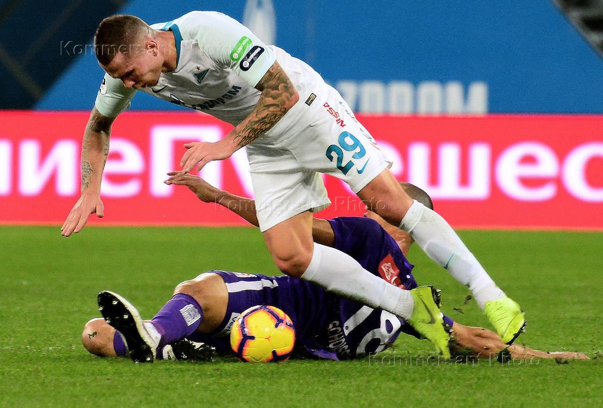 Товарищеский матч по футболу между командами "Зенит" (Россия, Санкт-Петербург) и "Аустрия" (Австрия, Вена) на стадионе "Газпром Арена". Игрок команды "Зенит" Антон Заболотный во время матча.