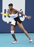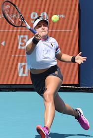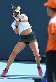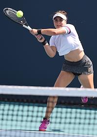 Теннисный турнир Miami Open 2019. Канадская теннисистка Бьянка Андрееску во время матча против эстонской теннисистки Анетт Контавейт.