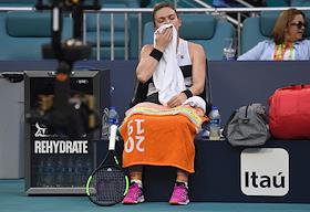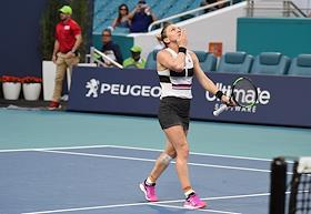 Теннисный турнир Miami Open 2019. Румынская теннисистка Симона Халеп во время матча против американской теннисистки Винус Уильямс.