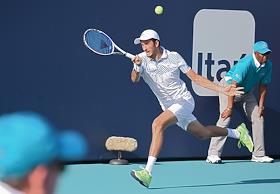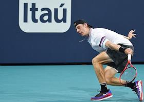 Теннисный турнир Miami Open 2019. Американский теннисист Рейли Опелка во время матча против российского теннисиста Даниилы Медведева.