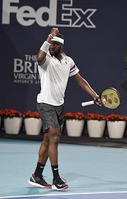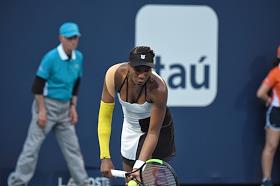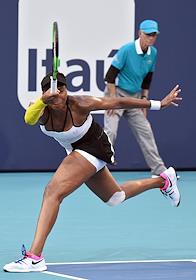 Теннисный турнир Miami Open 2019. Американская теннисистка Винус Уильямс во время матча против румынской теннисистки Симоны Халеп.