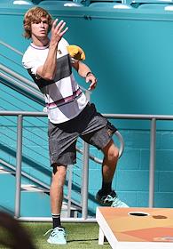 Теннисный турнир Miami Open 2019. Российский теннисист Андрей Рублев во время матча против канадского теннисиста Дениса Шаповалова.