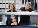Теннисный турнир Miami Open 2019. Родители греческого теннисиста Стефаноса Циципаса Юлия Сальникова (слева) и Апостолос Циципас (справа) на трибуне болельщиков во время матча их сына против аргентинского теннисиста Леонардо Майера.