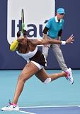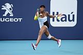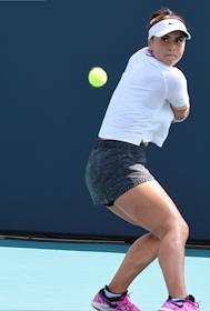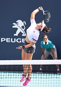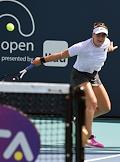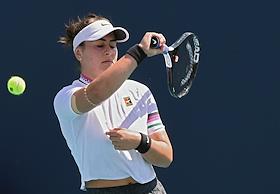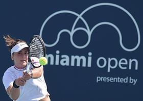 Теннисный турнир Miami Open 2019. Канадская теннисистка Бьянка Андрееску во время матча против эстонской теннисистки Анетт Контавейт.