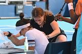 Теннисный турнир Miami Open 2019. Канадская теннисистка Бьянка Андрееску (слева) во время матча против эстонской теннисистки Анетт Контавейт.